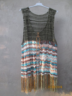 Vesta crosetata din fir Alize , marime XL Se inchide cu un snur detasabil.